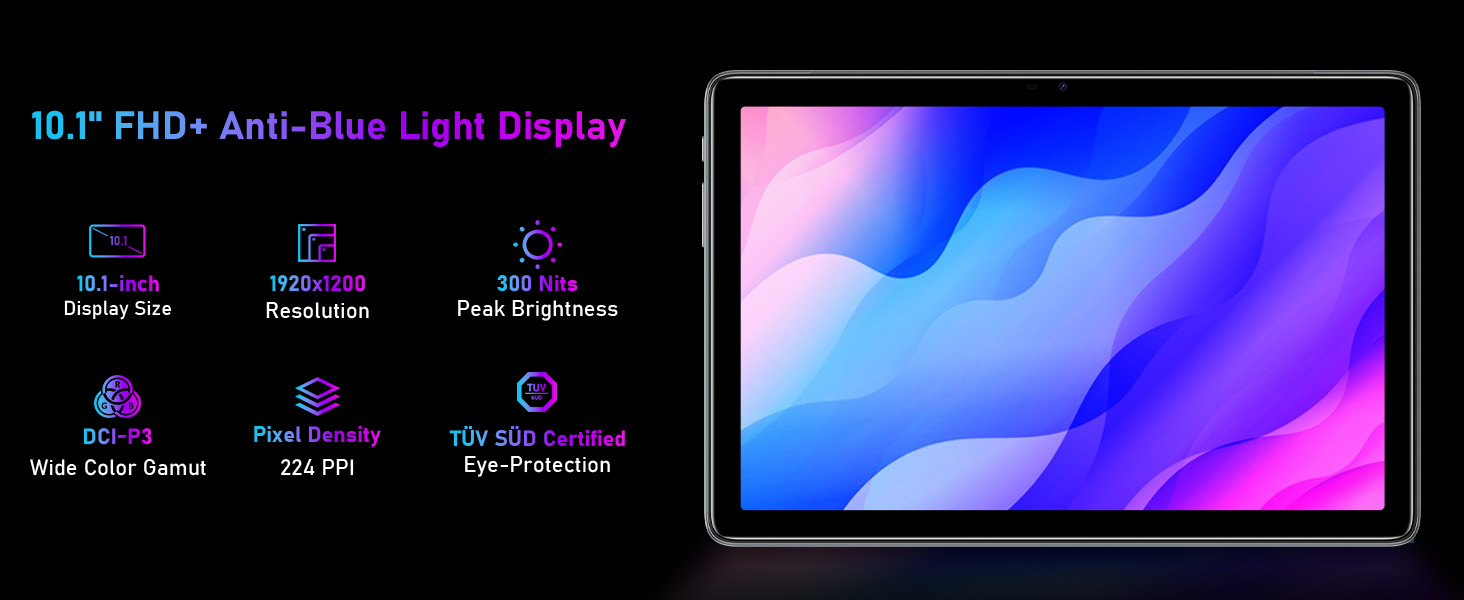 【الصور المرئية المذهلة ، والتجربة الغامرة】 استمتع بأفلامك المفضلة والألعاب والتطبيقات على شاشة عالية الدقة 10.1 بوصة. بدقة 1200x1920 ، وكثافة بكسل من 224ppi ، وسطوع الشاشة 320cd/m² ، كل صورة واضحة وواضحة ونابضة بالحياة. توفر شاشة T10 نسبة عرضية واسعة 16:10 ، وهي مثالية لتجربة مشاهدة غامرة. سواء كنت تشاهد مقاطع الفيديو أو القراءة أو العمل ، يوفر T10 Tablet علاجًا مرئيًا يعزز كل لحظة.