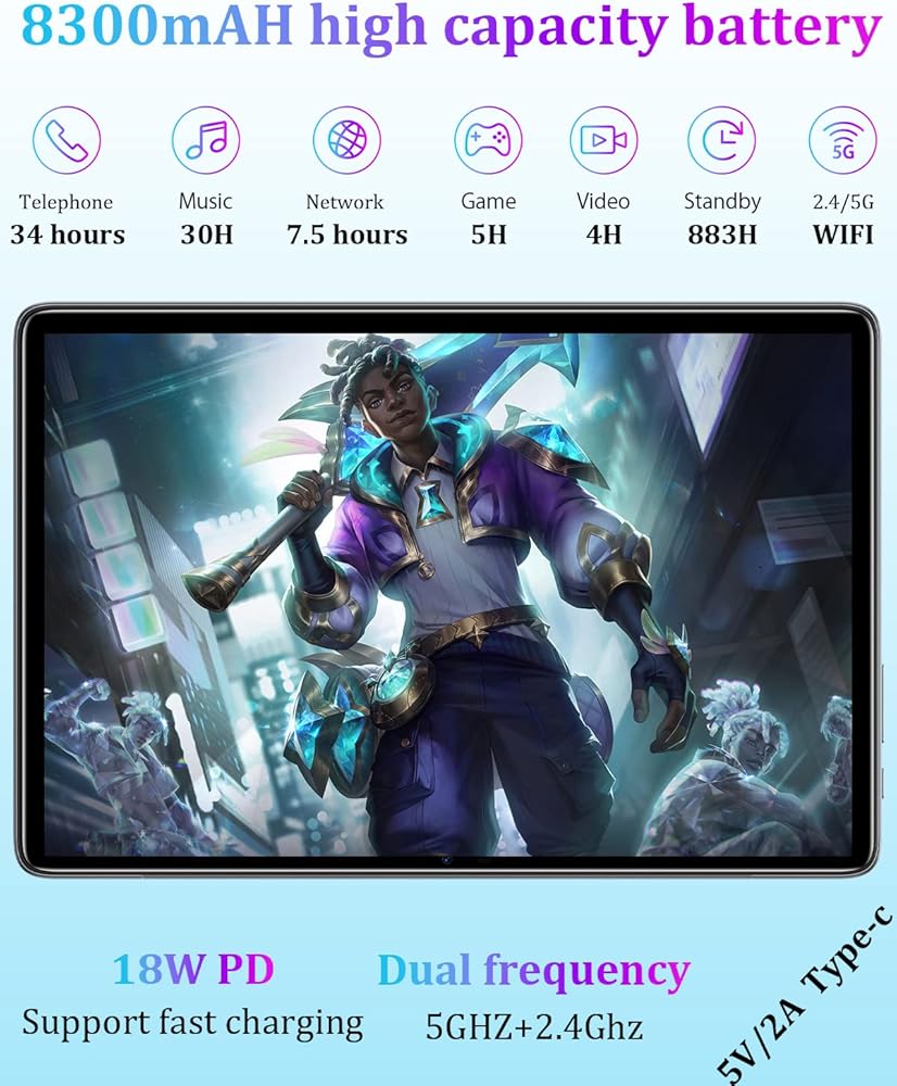 【ابق على اتصال ، في أي مكان】 بدعم من GPS و Glonass و Beidou و Galileo ، يضمن T10 Tablet أنك متصل دائمًا ولا تفقد طريقك أبدًا. كما يدعم كل من Wi-Fi 2.4 جيجا هرتز و 5 جيجا هرتز ، إلى جانب Bluetooth 5.0 ، مما يوفر اتصالًا سريعًا وموثوقًا أينما كنت. هل تحتاج إلى إبقاء أجهزتك مشحونة أثناء التنقل؟ توفر بطارية T10 8000mAh طاقة طويلة الأمد ، مع دعم للشحن السريع لإبقائك مستمرًا طوال اليوم.