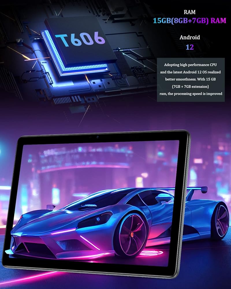 【التصميم الأنيق ، الأداء القوي】 تم تصميم جهاز T10 Tablet بتصميم نحيف وأنيق ، ويزن 567 جم فقط ويبلغ سمكه 8.4 ملم ، مما يجعل من السهل حمله واستخدامه في أي مكان. على الرغم من تصميمه الخفيف ، يحزم T10 لكمة مع معالج UNISOC T606 ، وهي بنية ذات 8 أسطح ، و 15 جيجابايت من ذاكرة الوصول العشوائي مع تخزين 128 جيجابايت. سواء كنت تعدد المهام أو دفق مقاطع الفيديو أو ممارسة الألعاب ، فإن هذا الجهاز اللوحي يعالج كل شيء بسهولة.