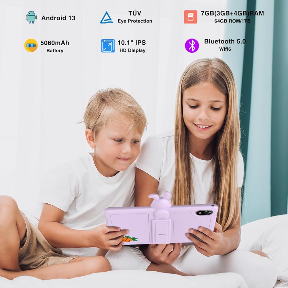 tablet tablet Android 13 Kids Tablet + 7GB/64GB storage tablet Doogee 10 Int Kids التي يتم تمكينها بأحدث نظام تشغيل Android 13.0 ، حيث يقدم اتصالات أسرع وأكثر استقرارًا وواجهة سهلة التشغيل للتعلم أو الألعاب أو الترفيه. وهي مزودة بسعة تخزين ذاكرة الوصول العشوائي 7 جيجابايت + 64 جيجابايت وذاكرة وراثيا ويدعم توسيع 1 تيرابايت ، مما يوفر مساحة كبيرة للتطبيقات والألعاب والوسائط. يدعم اتصالات Wi-Fi و Bluetooth و Hotspot.