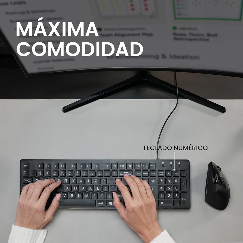 • CONFIGURACIÓN STANDARD: Teclado de tamaño real, cuenta con las funciones básicas de cualquier teclado, como las teclas F y el teclado numérico ubicado en el grupo de teclas del lado derecho del teclado; Dimensión 44 x 13 x 2,5 cm