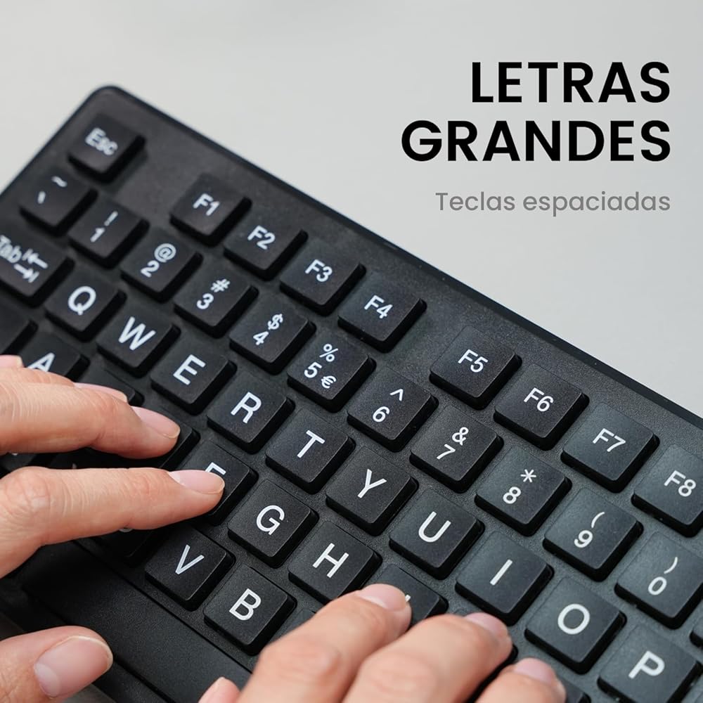 • LETRAS IMPRESAS EN GRANDE: Las letras de las teclas están impresas en grande, son 3 veces más grandes que las de un teclado standard