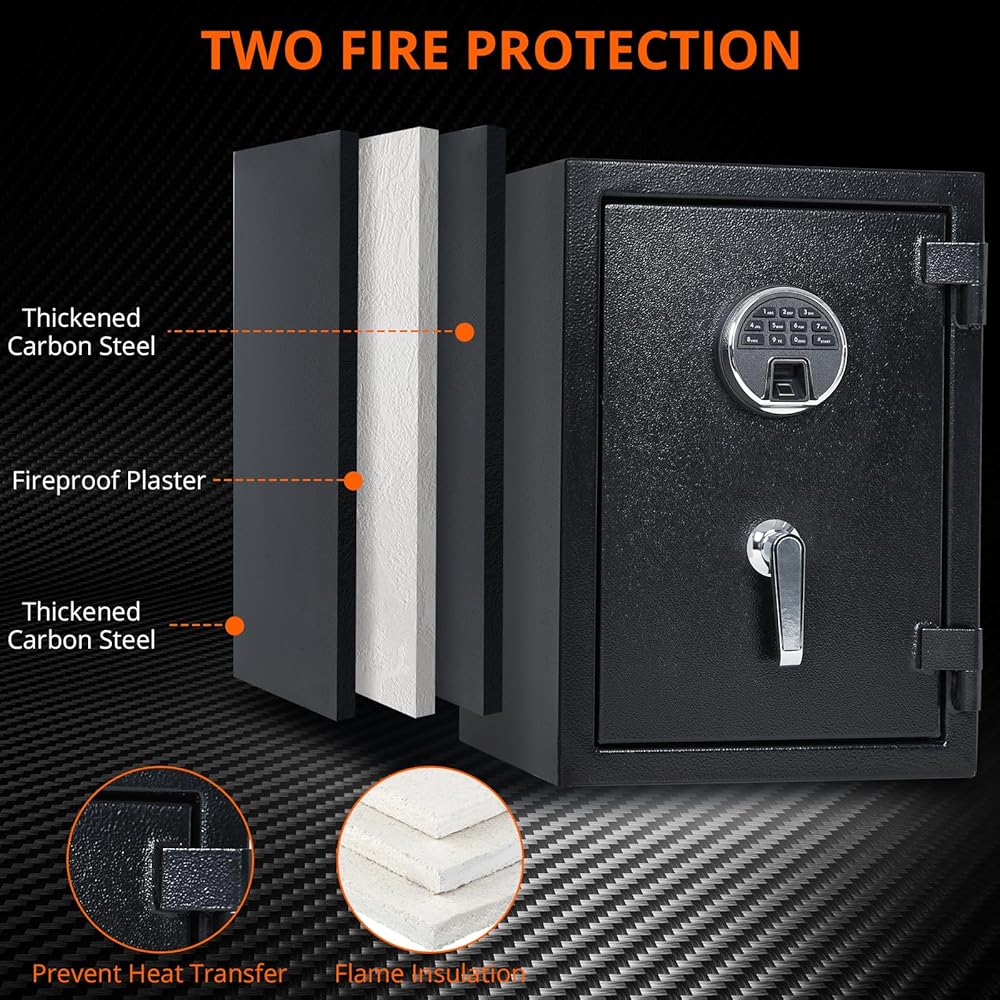 🏚 【مزدوج النيران】: مفصلتان خارجيتان لمنع الحرارة من الانتشار إلى الداخل. يعمل الجص المقاوم للحريق كطبقة تلويح اللهب لمساعدة المستند الخاص بك على الوقوف بشكل جيد للنيران.