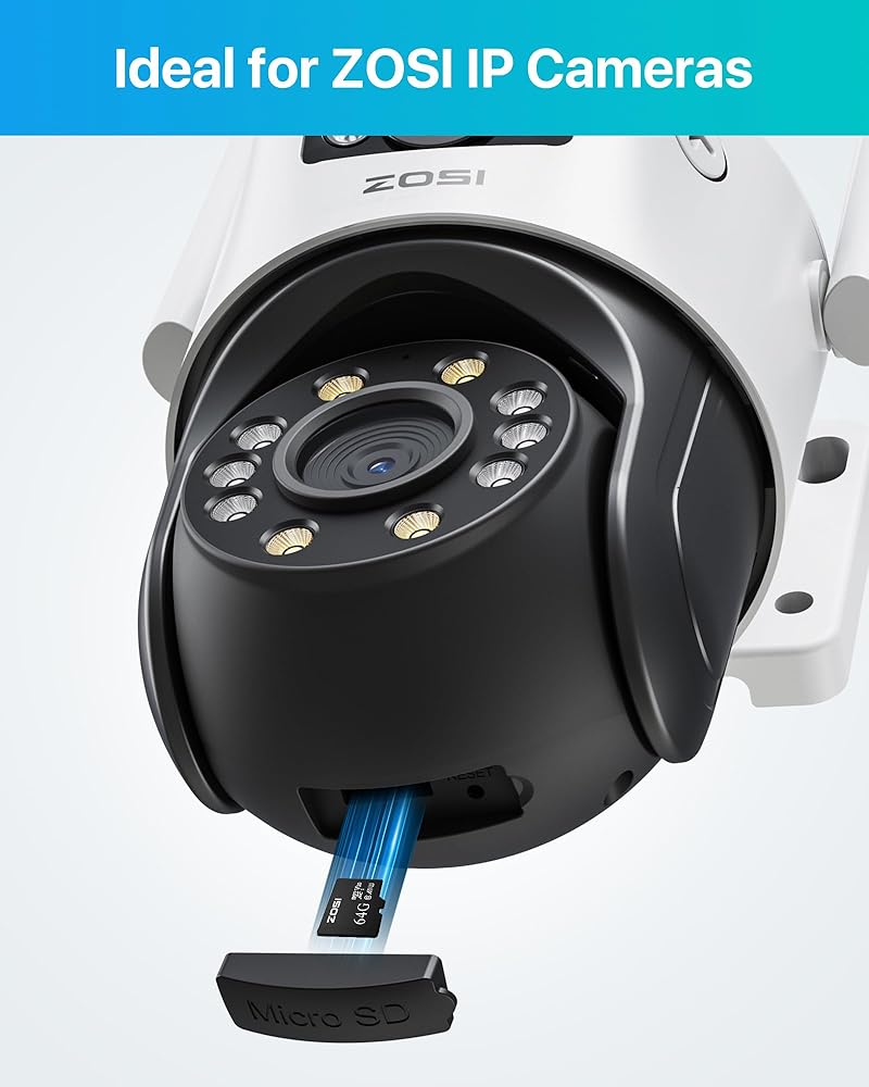 Zosi 64gb MicroSDXC UHS-I الذاكرة ، يعمل مع كاميرات Zosi PT ، 2MP 3MP 5MP 4K كاميرا PT خارجية داخلية