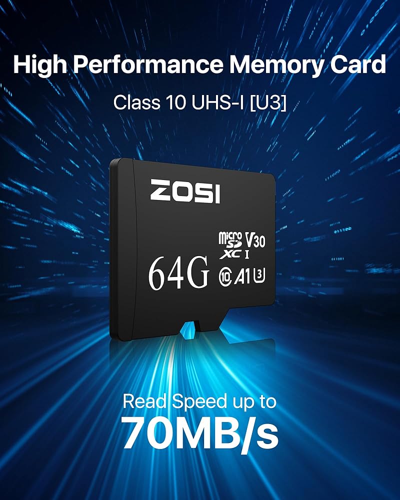 تخزين عالية الجودة: تخزين صور عالية الدقة. باستخدام بطاقة Zosi Micro SD ، يمكنك الاستمتاع بتجربة عرض استثنائية دون المساس بالجودة.