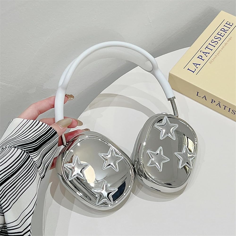 غطاء الحالة لـ AirPods Max ، TPU Cute Cool Soft Soft ، غطاء أذن النجوم الصغير المكعب لـ Apple Airpods Max for Women Excessories Cover (Little Star ، Silver)