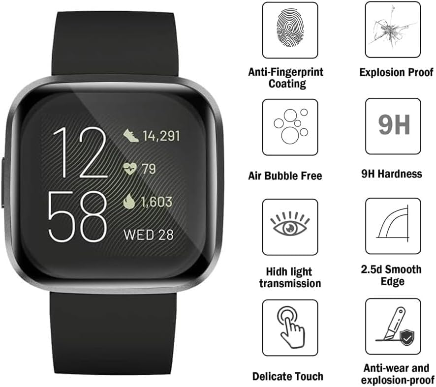 - التوافق: واقي شاشة زجاجي مصممة خصيصًا لـ Fitbit Versa 2 Smartwatch , Premium PMMA Protection Crystal Clear Film [Not Glass].