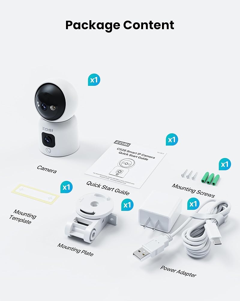 [تتبع الحركة البشرية الذكية] يمكن لهذه الكاميرا المزدوجة اكتشاف الحركة البشرية وتتبع الحركة تلقائيًا ، مما يجعلك على اطلاع بإخطارات التنبيه في الوقت المناسب عبر تطبيق Zosi Smart. يمكنك أيضًا تخصيص مناطق الكشف ونقاط محددة مسبقًا للتركيز على مجالات محددة من منزلك.