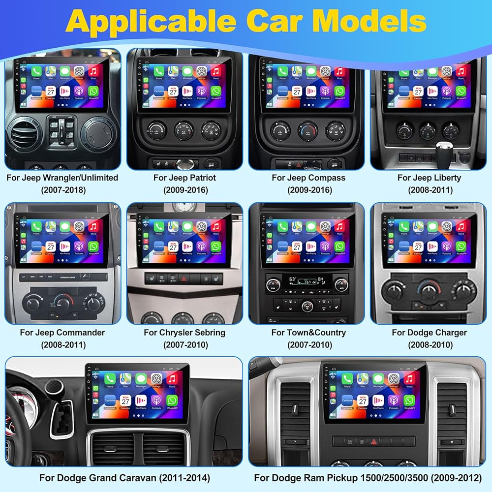 Android 13 Car Radio Stereo for Jeep Wrangler JK (2007-2018) ، Dodge RAM 1500 2500 (2009 2010 2011 2012) ، Jeep Grand Cherokee (2005-2011) ، Support Wireless Carplay & Android Auto ،