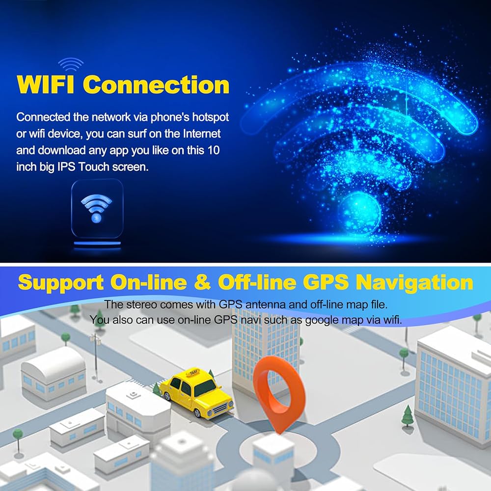 【GPS Navigation & WiFi】 وحدة GPS Head وحدة GPS المدمجة في GPS وهوائي GPS الخارجي للتنقل عبر الإنترنت أو غير متصل بالإنترنت. يتم تحميل بيانات الخريطة المتصلة بالإنترنت مسبقًا ، وعلى استعداد للاستخدام بعد التثبيت ، وتشمل الصوت والبصري بدوره 11 مليون مكتبة+ POI ، والطرق ثنائية وثلاثية الأبعاد ، وتتبع الوقود. يدعم راديو السيارة أيضًا اتصال WiFi Hotspot ، ويمكنك بسهولة الوصول إلى تطبيقات التنقل عبر الإنترنت وتنزيلها ، و Instagram ، و Facebook ، و Tiktok ، وما إلى ذلك في متجر Play.