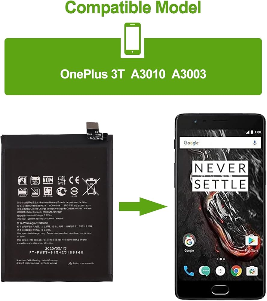 Compatible with OPPO BLP633 1+3T OnePlus 3T . Model NO.:BLP633 . Make sure your phone is suitable for this replacement battery before ordering.
