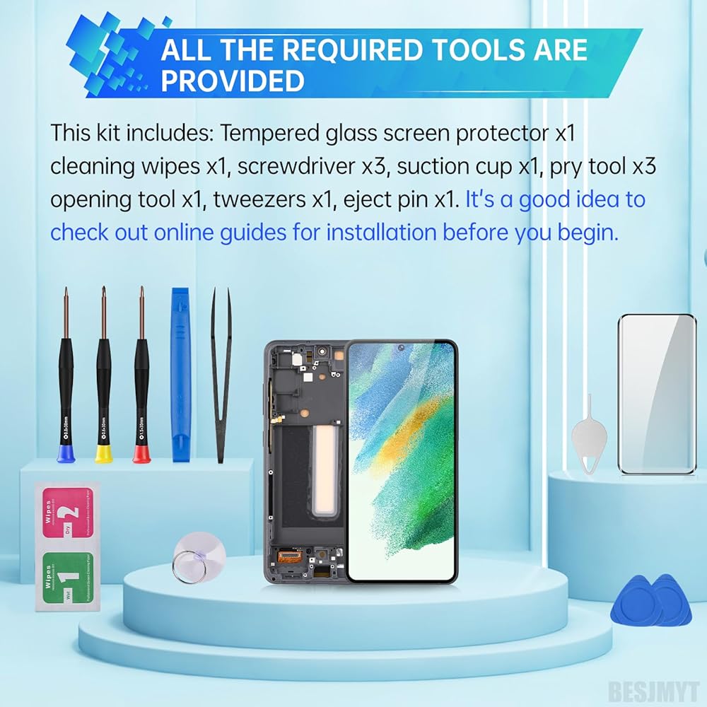 التطبيق: هذا استبدال شاشة OLED متوافق مع Samsung Galaxy S21 Fe 5G. يتناول حلنا لمسة لا تستجيب ، ومواطن الخلل البصرية ، ومشاكل البكسل ، والتشققات ، وعدم الدقة في اللون ، وتدهور OLED.