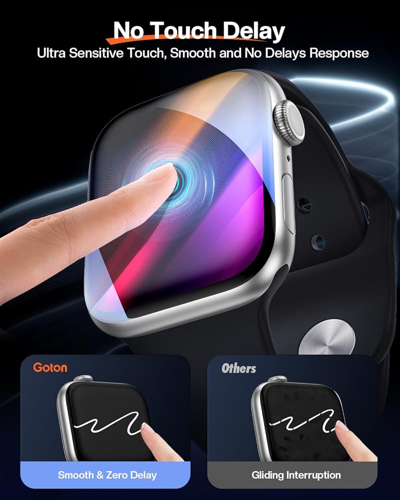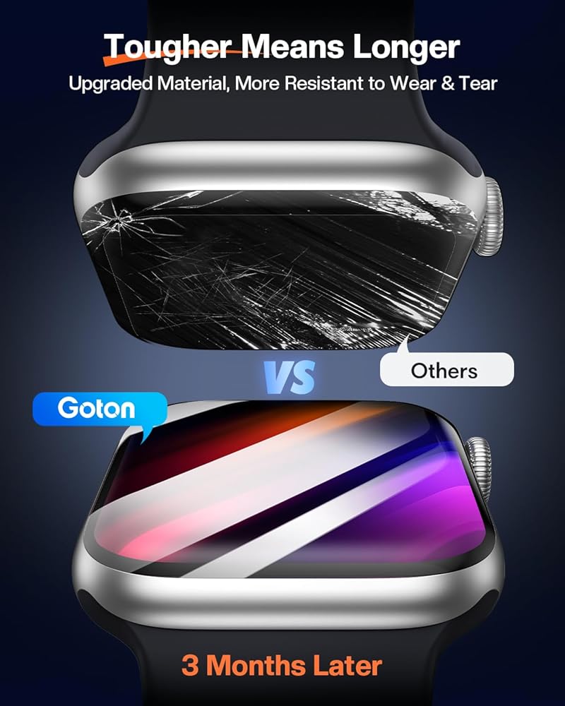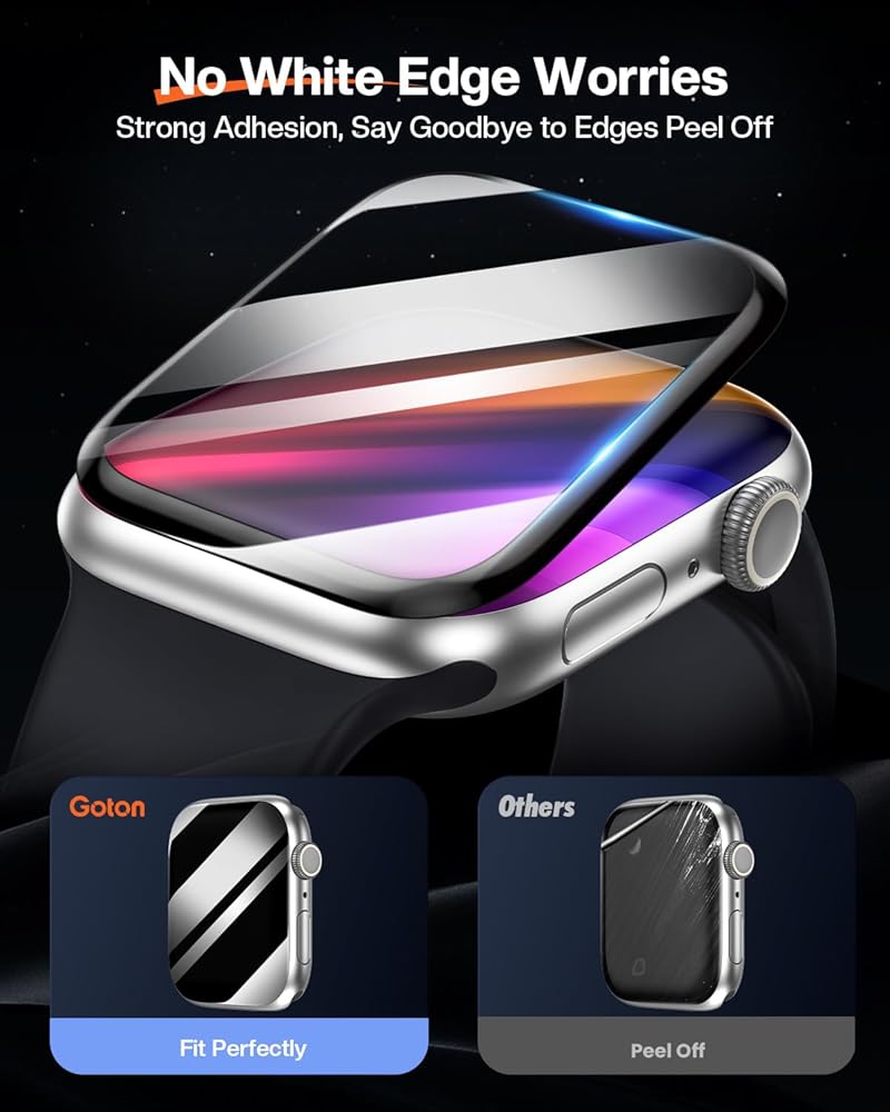 Custom Fit, Bubble-Free Installation: Specially designed screen protector for Apple Watch 45mm, 41mm, 44mm, 40mm, and 49mm; requires Goton installation tool for easy and flawless bubble-free installation