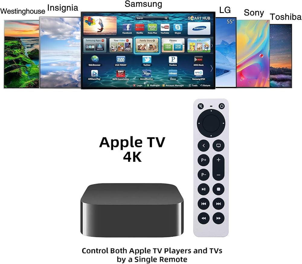 • 【النماذج المعمول بها】 Samsung ، LG ، Sony ، Westinghouse ، Insignia ، Toshiba ، وليس لأي تلفزيون Roku. متوافق مع Apple TV 4K (الجيل الثالث) ، Apple TV 4K (الجيل الثاني) ، Apple TV 4K (الجيل الأول) ، و Apple TV HD