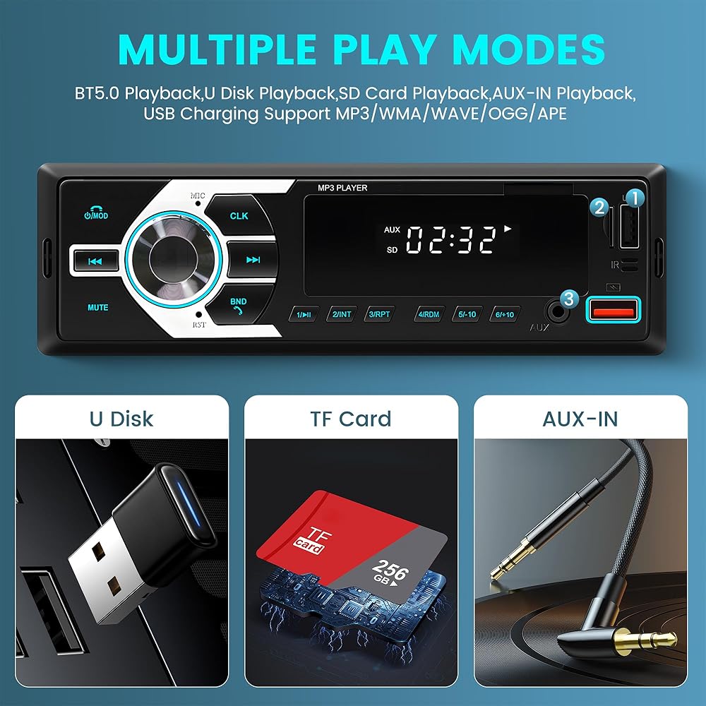 ●Power off memory function. the player can automatically remember the playing state when power off (shutdown), and when it is restarted, it will automatically remember the previous music or radio playing state
