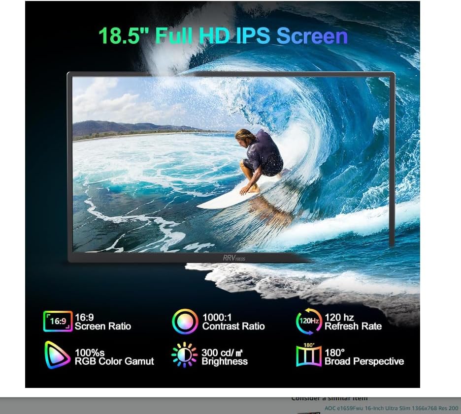 VESA & Stand --- يتميز هذا الشاشة المحمولة التي يبلغ طولها 18.5 بوصة بمحطة VESA بسعة 100 مم × 220 مم وحامل قابل للتعديل بنسبة 180 درجة ، مما يوفر المرونة والمتانة لسيناريوهات الاستخدام المختلفة.