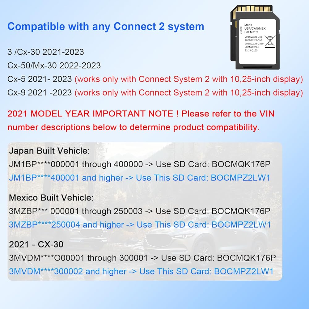 [مركبات متوافقة مع بطاقة SD SD] MAZDA SD CARD SD متوافقة مع MAZDA 2021/2022/2023 CX5 ، MAZDA 2021/2022/2023 CX9 ، MAZDA 2021/2022/2023 CX30 ، 2021/2022/2023 3 ، 2022/2023 CX50 و نماذج أخرى.
