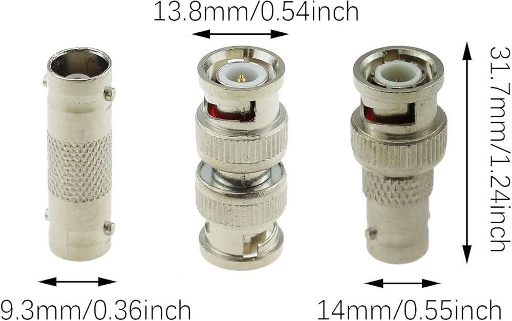 • Packing list: 2pcs BNC male to male, 2pcs female to female, 2pcs female to male