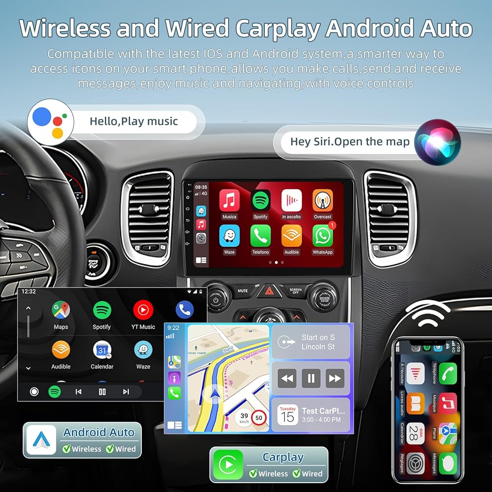 ستيريو سيارة ل Dodge Durango 2014 2015-2020 - 9 بوصة 2 + 64G Radio Android Touchscreen Radio مع Carplay اللاسلكي و Android Auto و HIFI/WIFI/GPS/SWC + AHD النسخ الاحتياطي