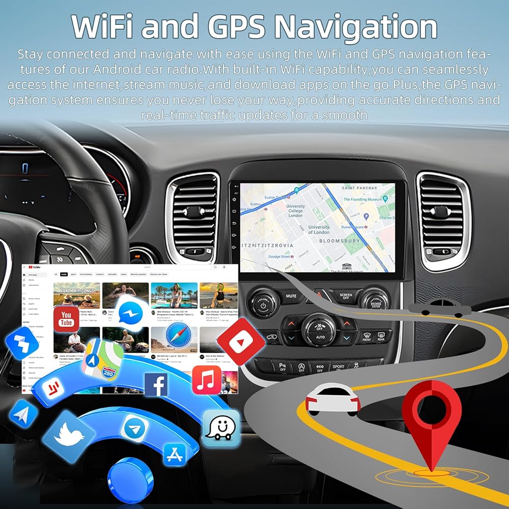 • تنقل WiFi & GPS: يتصل راديو السيارة باللمس ل Dodge Durango إلى شبكة WiFi ويقوم بتنزيلات التطبيقات ومقاطع الفيديو عبر الإنترنت ، ويدعم التنقل عبر الإنترنت والإنترنت ، ويمكنه التحميل المسبق لخرائط التنقل في وضع عدم الاتصال "على تطبيق" WE HERE "، مما يجعل قيادتك أكثر ملاءمة و مسلية.