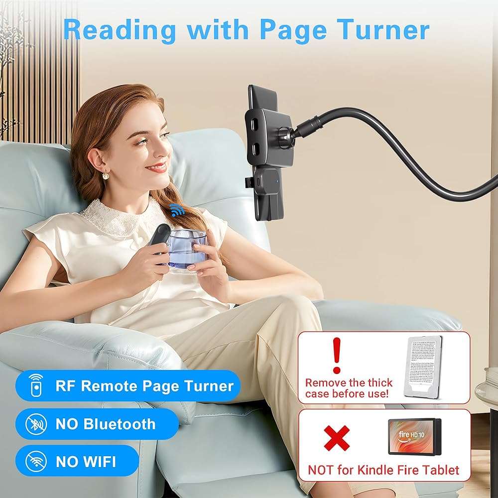 حامل تابلت معقوفة لقراءة كيندل في السرير مع جهاز تحكم عن بعد للصفحة، حامل ذراع كسول بجانب السرير بجانب السرير لملحقات كيندل، هدايا للقراء