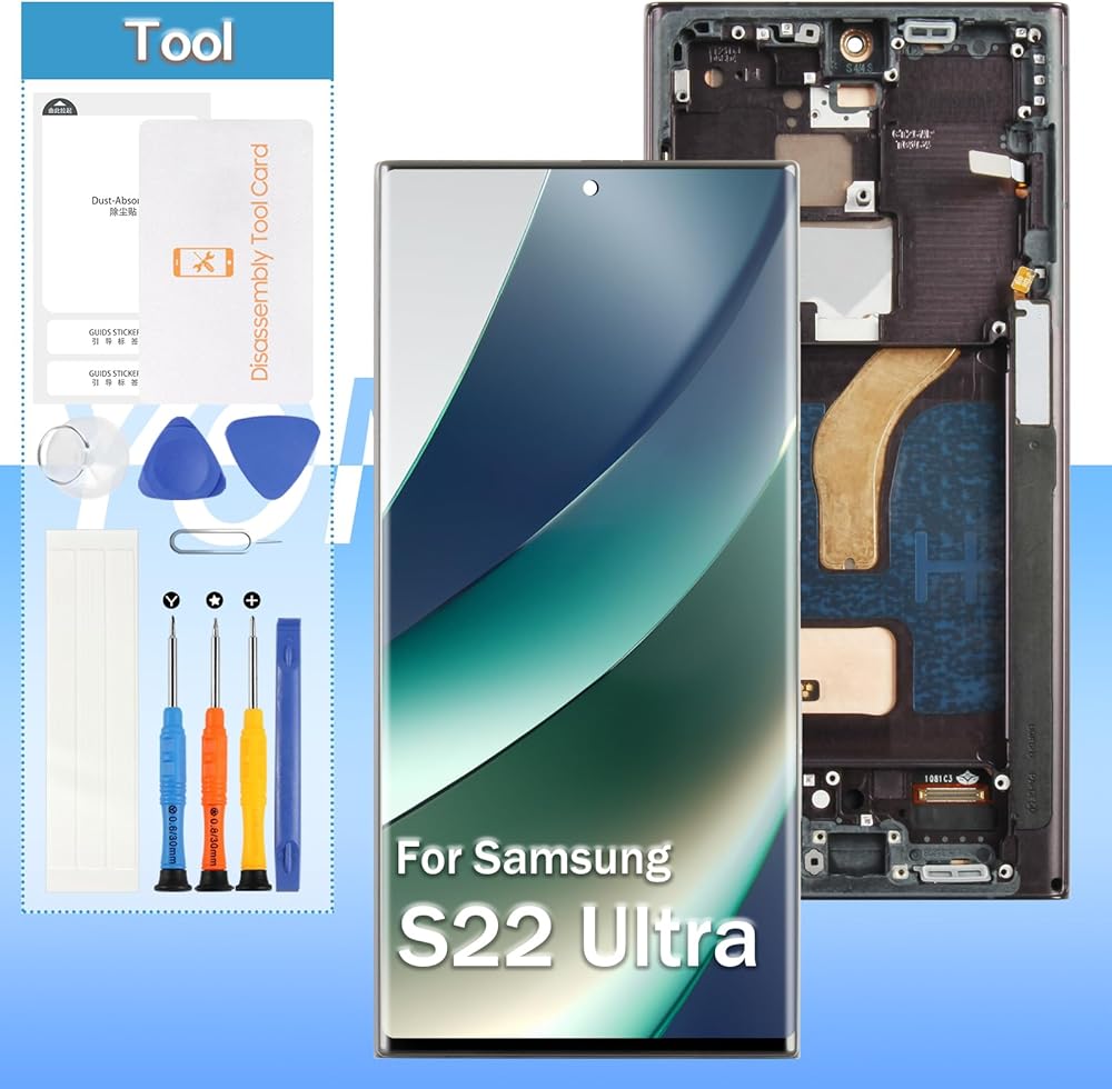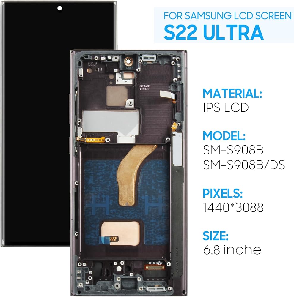 • 【High Quality Display】(Incell,Black with Frame)For Samsung Galaxy S22 Ultra SM-S908B SM-S908U SM-S908A.100% brand new LCD screen. All of our products undergo strict testing before shipment. Guaranteed high quality LCD touch screen replacement components for your device, experience crystal clear visuals.
