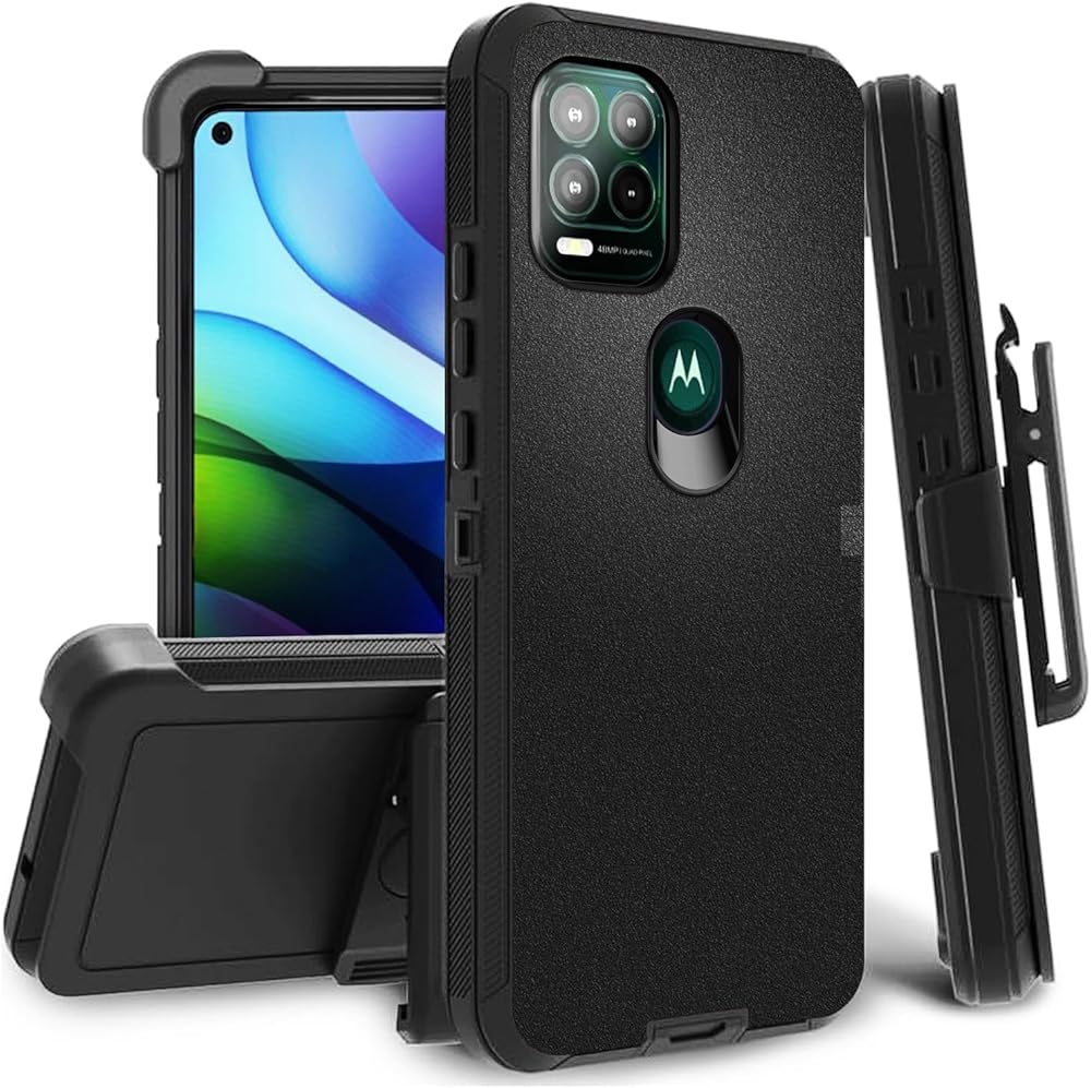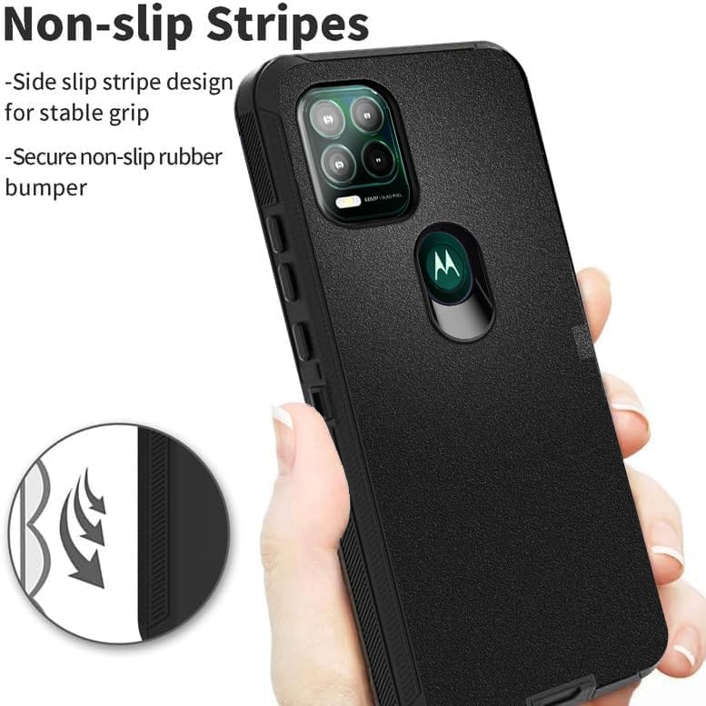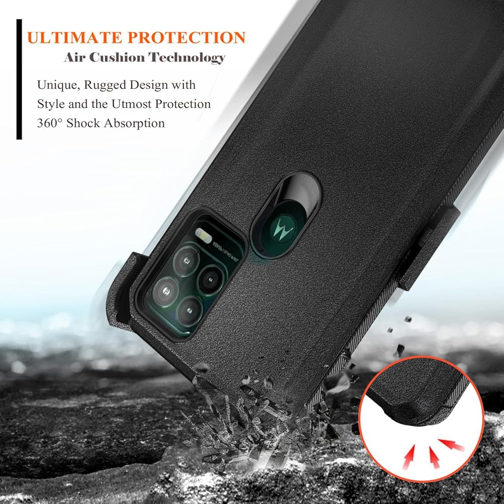 بالنسبة إلى Motorola Moto G Stylus 5G (2021) مع واقي شاشة زجاجي مقسّر ، حزام حزام ، حماية من الخدمة الشاقة 3 طبقات هجينة مقاومة للصدمات (أسود)