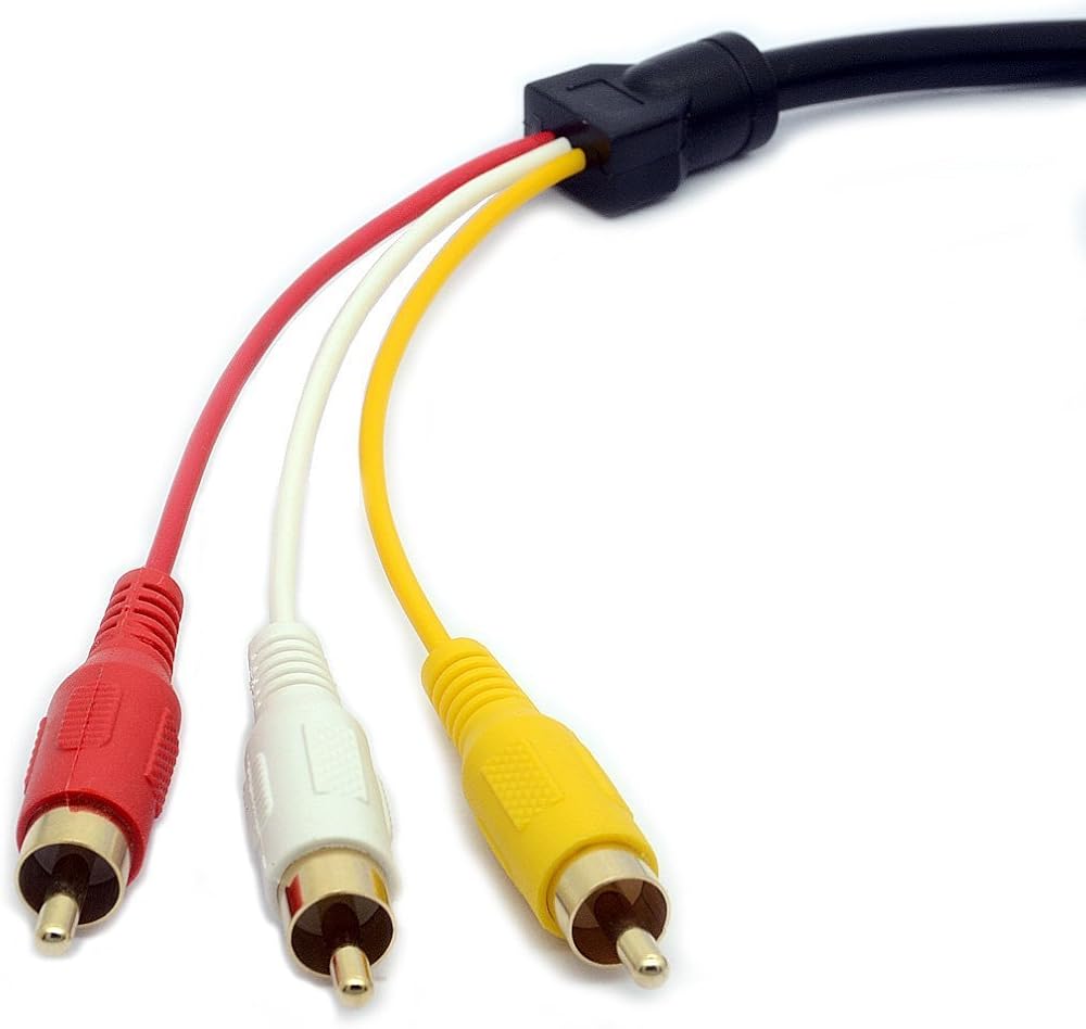 - Output Connector: 3 RCA male connectors, red, white, yellow