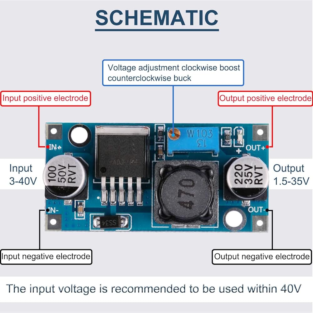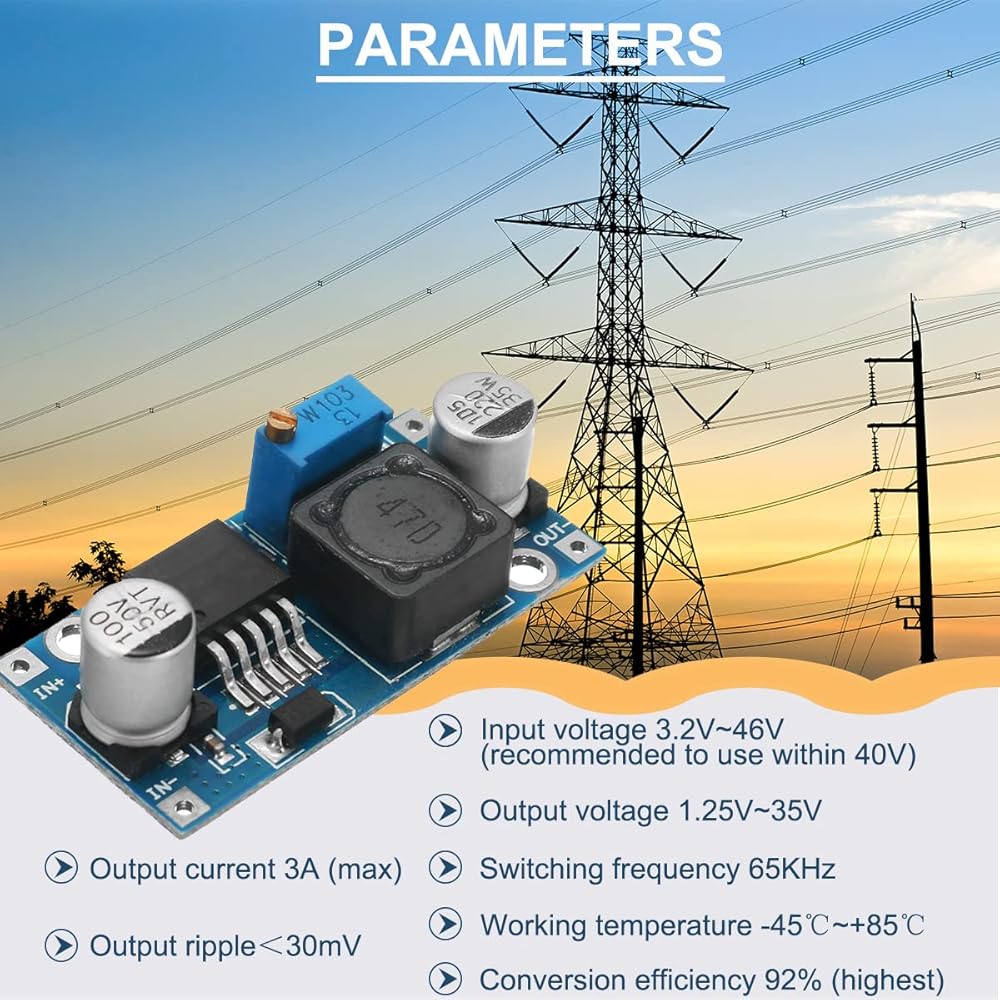 Voltage range: Input:DC3-40V(The input voltage must be higher than the output voltage). Output: DC 1.25-35V voltage is continuously adjustable, maximum output current is 3A