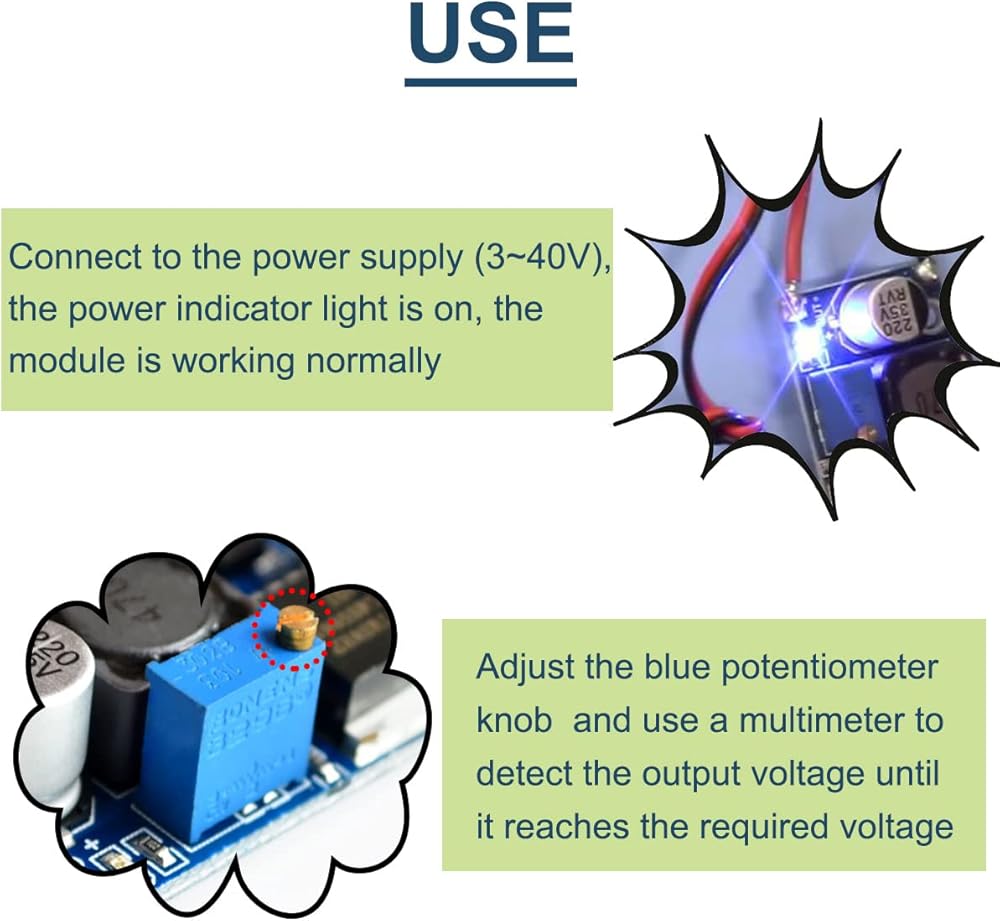 Module: Using LM2596S voltage regulator chip, with power indicator light, it is convenient to visually see the working condition of the module and adjust the voltage required by yourself