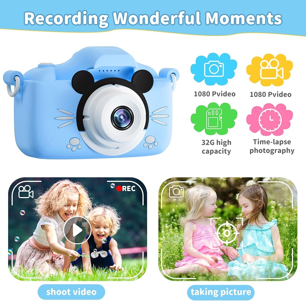 كاميرا Yatao Kids ، 1080 بكسل HD Digital Camera للأطفال الذين لديهم بطاقة 32 جيجابايت ، وكاميرا رقمية للأطفال 40 ميجابكسل للبنات على مدى 3 سنوات ، هدايا عيد ميلاد عيد الميلاد المثالية للطفل ، الفأر الأزرق