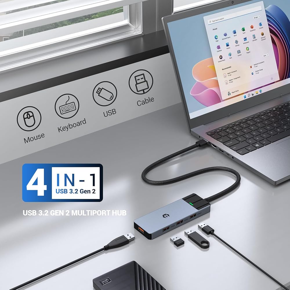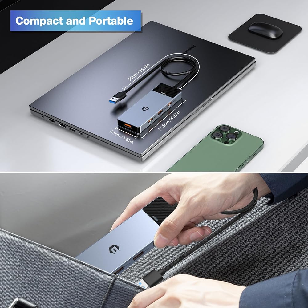 4-Port USB HUB ، USB 3.2 HUB ، USB Splitter ، 10GBPS HUB ، محول متعدد الأطوار مع كابل طويل 1.6 قدم/50 سم لأجهزة Xbox ، الكمبيوتر المحمول ، الكمبيوتر ، Tesla Model 3 ، Mobile HDD