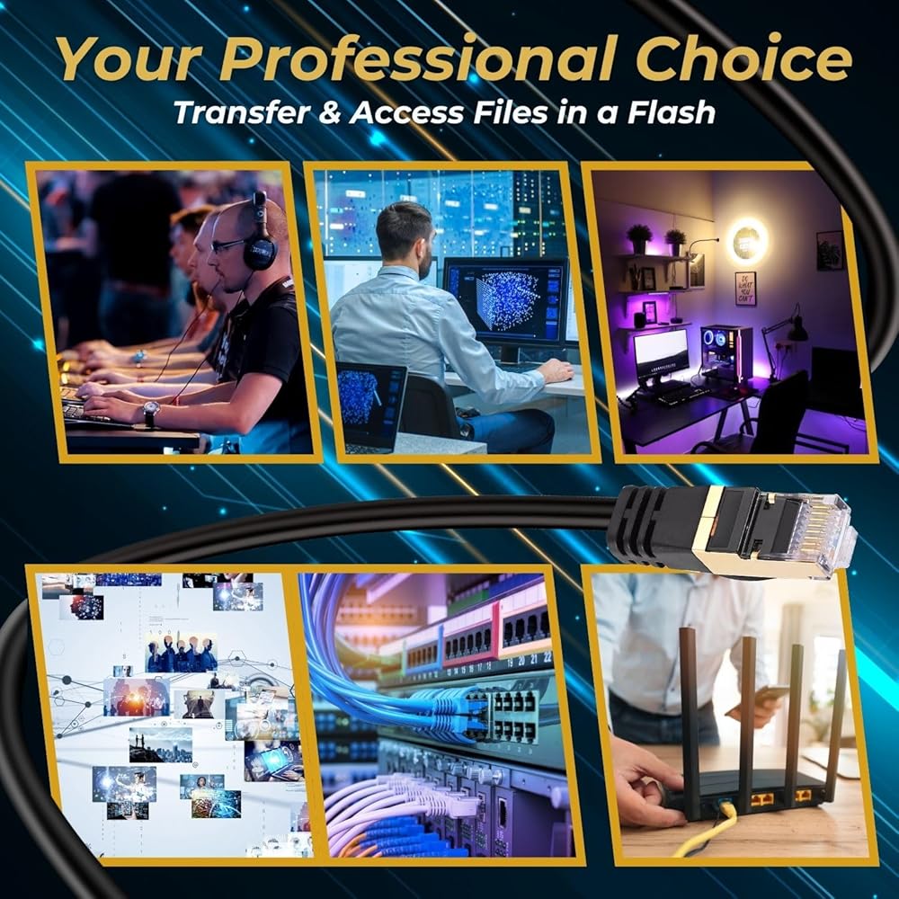 Shielded Performance: Our cat 7 ethernet cable high speed cord is armed with Screened Shielded Twisted Pair (S/STP) and gold-plated RJ45 connectors to block EMI/RFI interference for top-notch reliability