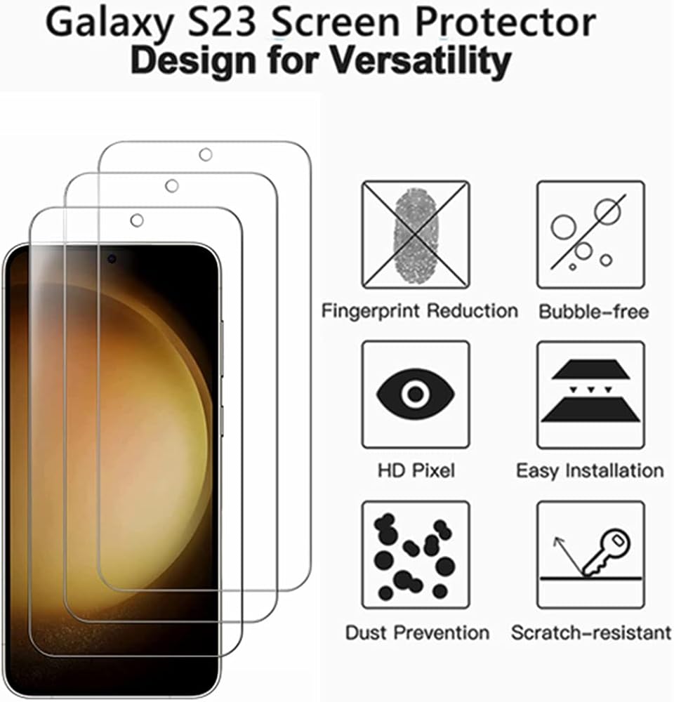 • ❸▲【Perfect fit for Galaxy S23 Screen Protector】: Exclusively Designed for Galaxy S23 With Precise Cutouts, Compatible With most Samsung Galaxy S23 Cases and Covers.