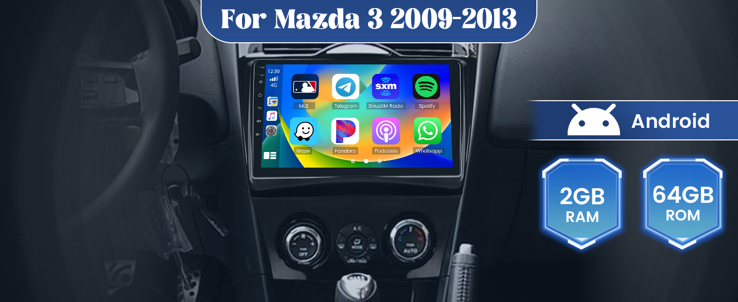 ستيريو للسيارة لـ Mazda 3 2009 2010 2011 2012 2013 ، Apple Wireless Carplay Android Auto ، 2+64G Android 13 9 Inch Touch Radio مع GPS WiFi FM RDS Radio AHD Camera