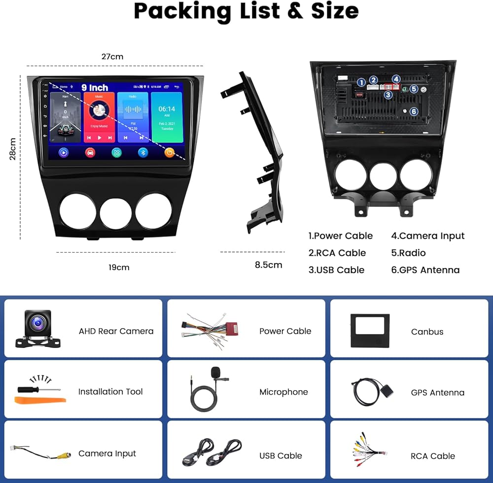متوافق مع المركبات: Hikity Android Car Radio متوافق مع Mazda 3 2009 2010 2011 2012 2013. راديو Carplay هذا مع RAM 2G Core و 64g ROM ، نظام التشغيل Android 13 ، 9 بوصة شاشة تعمل باللمس وتجربة المستخدم الحساسة. لا توجد حاجة إلى تغييرات إضافية في إطار أو كابل. مزودًا بـ Canbus ، وهو يدعم معظم الوظائف الأصلية بما في ذلك SWC ، نظام Bose ، OnStar ، معلومات الباب ، إلخ.