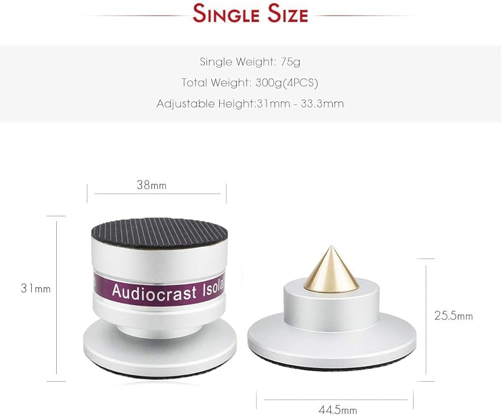 ②جودة صوت هاي فاي عالية الدقة: تقليل الرنين بشكل فعال، مناسب لأظافر القدم على معدات السماعات أو الرفوف لتقليل الاتصال بين الصندوق والأرض بشكل فعال، مما يوفر امتصاصًا أكثر دقة للصدمات، ويقلل من توليد الرنين، وتعبيرًا أكثر نعومة عن نسيج الموسيقى نفسها، وبالتالي تحقيق مؤثرات صوتية عالية الجودة توازن موسيقى HIFI، وكأنها تضخ الحيوية في الموسيقى وتعيد إحيائها على الفور.