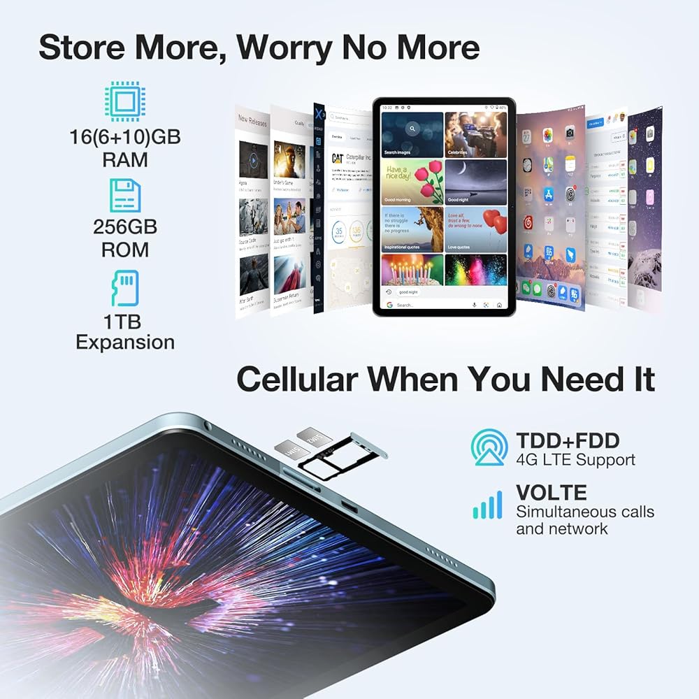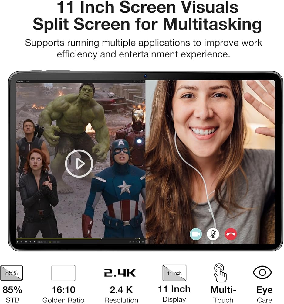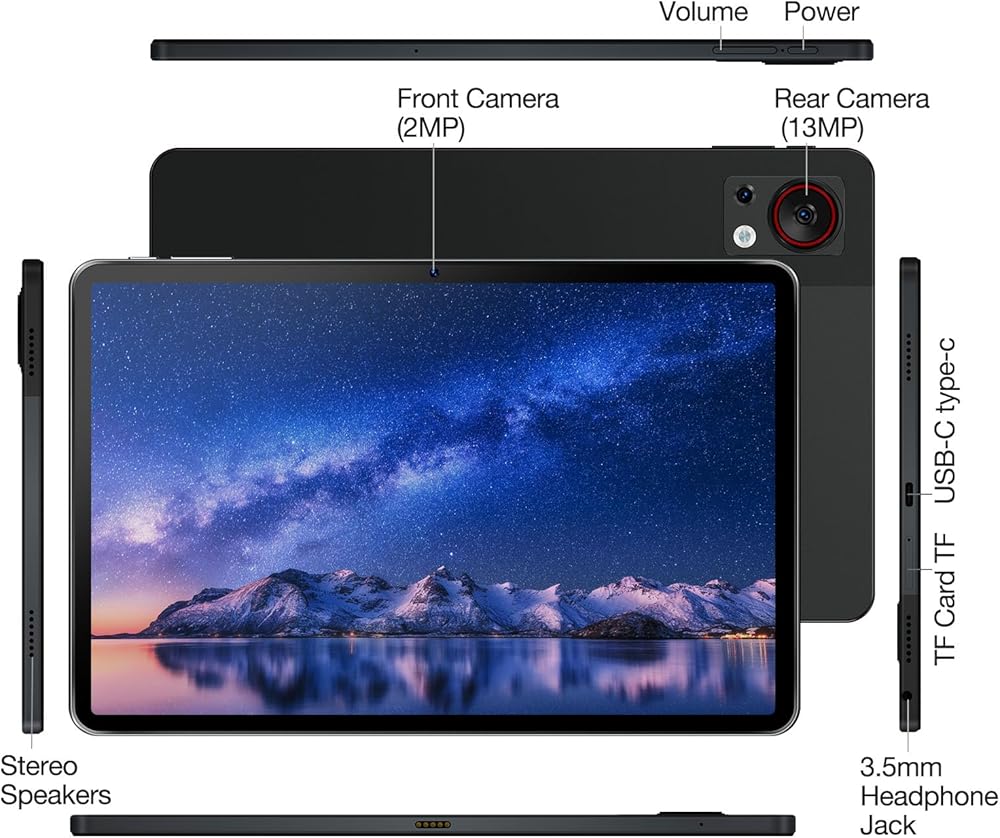 【8580 مللي أمبير في الساعة بطارية كبيرة+ 13 ميجابكسل+ 8 ميجابكسل كاميرا مزدوجة+ 4 مكبرات صوت】 يتميز جهاز الكمبيوتر اللوحي بنظام Android ببطارية ذات سعة كبيرة 8580 مللي أمبير مع وقت استعداد تصل إلى 720 ساعة ، مما يسمح لك بحملها في أي مكان وفي أي وقت ، ولم يعد عليك القلق بشأن التشغيل خارج السلطة. هذا الكمبيوتر اللوحي الذي يبلغ طوله 11 بوصة مع كاميرا خلفية بدقة 13 ميجابكسل وكاميرا أمامية 8 ميجابكسل ، مما يوفر لك تسجيل فيديو ممتاز وتجربة الصور ، مثالية لمكالمات الفيديو ومؤتمرات الفيديو. تقوم مكبرات الصوت الرباعية بتسليم صندوق PA الذكي مع المؤثرات الصوتية الصادمة ، الصوت ثلاثي الأبعاد.