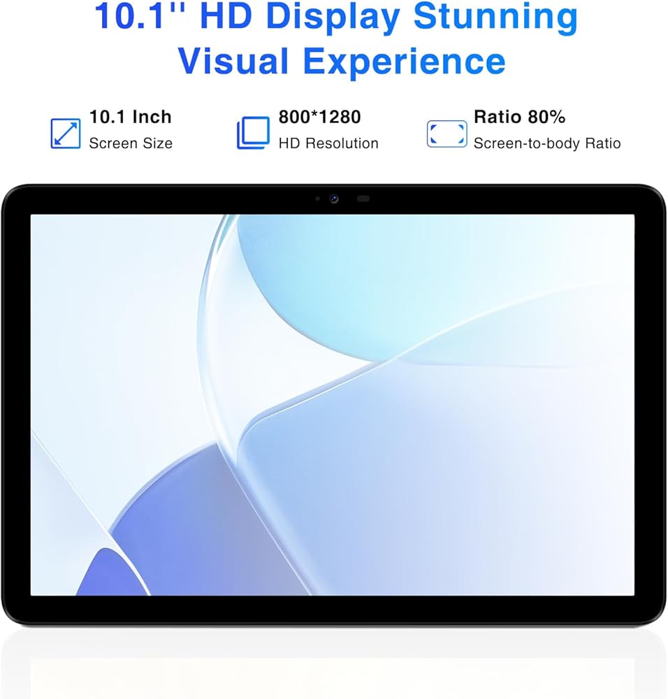 【استمتع بمزيد من الوظائف】 يعتمد جهاز Android Tablet شاشة IPS HD بحجم 10 بوصات ، ويبلغ دقة عالية جدًا تبلغ 1280 × 800 وإطارًا فائقًا جدًا 7 مم من نفس الحجم. الجهاز اللوحي مدمج في رقاقة WiFi مزدوجة النطاق ، و WiFi 5G و 2.4G WIFI أكثر استقرارًا. بالإضافة إلى ذلك ، يتميز أحدث اتصال Bluetooth 5.0 بسرعات نقل بيانات أسرع. مزودة بكاميرا أمامية واضحة 5 ميجابكسل وكاميرا خلفية 8 ميجابكسل ، سجل كل لحظة في حياتك.