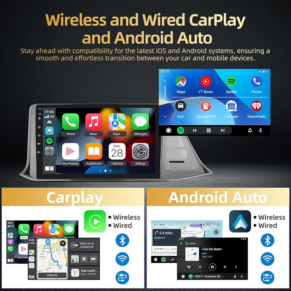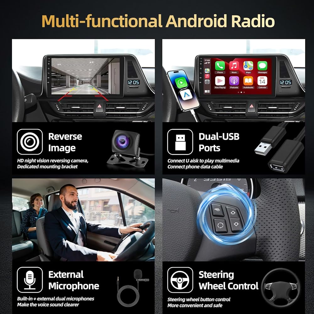 ستيريو السيارة مع carplay اللاسلكية/السلكية و Android Auto: تم ترقيتنا لراديو Toyota C-HR يدعم carplay اللاسلكية/السلكية و Android Auto. قم بتوصيله بهاتفك الذكي عبر Bluetooth أو WiFi أو USB Cable ، ويمكن لـ Siri أو غيرهم من المساعدين بمساعدة الصوت مساعدتك في فتح الخرائط ، وإجراء المكالمات واستلامها ، وتشغيل الموسيقى ، والمزيد.