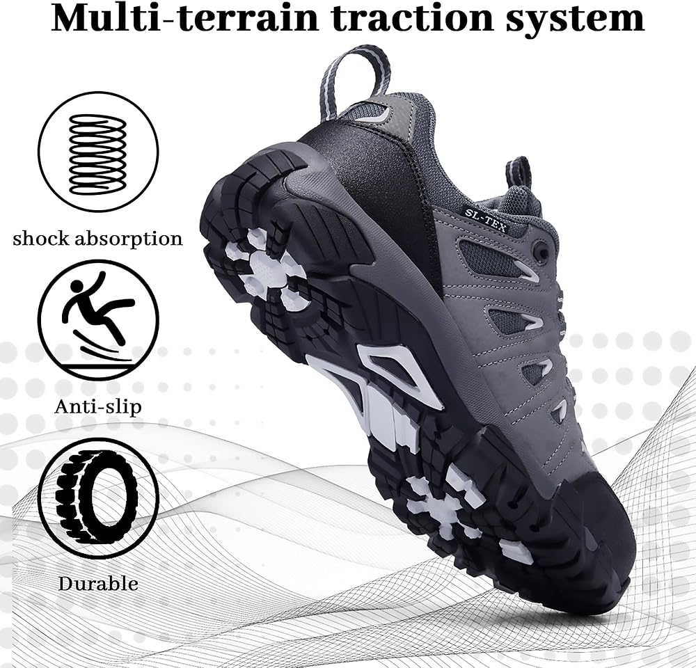 مقاومة للماء وخفيفة الوزن: أحذية المشي لمسافات طويلة مصنوعة من الجلد الاصطناعي والشبكة. يمنع الغشاء المقاوم للماء SL-TEX الماء من دخول وتقليل بخار الماء. الوزن الخفيف للغاية: 0.87 رطل (الحجم 8)
