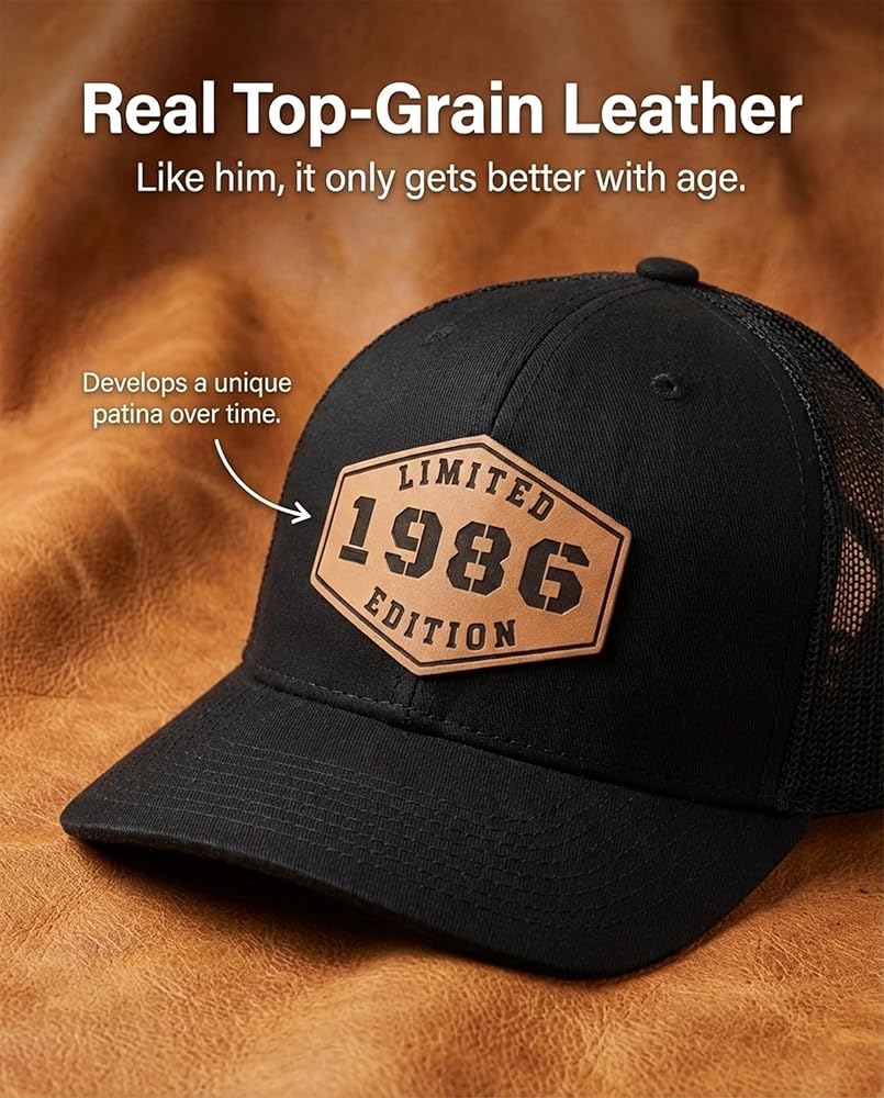 فريدة من نوعها وأنيقة محدودة الإصدار 1985 جلدي باتش الشاحنة القبعة للرجال - فكرة الهدية المثالية للاحتفال بعيد ميلاد الأربعين!