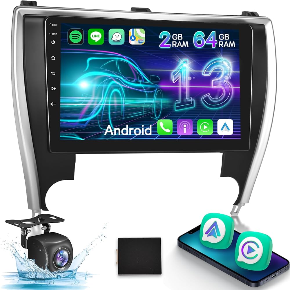 [4 + 64g] لتويوتا كامري 2015 2016 2017 ترقية ستيريو - 10.1 بوصة IPS Toushscreen Android 13 Radio - Carplay اللاسلكي و Android Auto ، الصفحة الرئيسية المخصصة ، WiFi ، GPS ، متعدد الوظائف + كاميرا احتياطية AHD in Kuwait