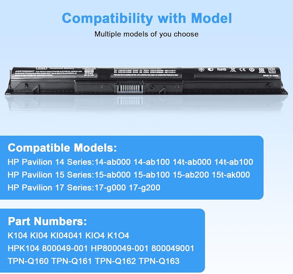【النماذج المتوافقة】 بطارية بديلة لـ HP Envy 14 15 17 سلسلة الكمبيوتر المحمول: 14-V000-V099 15-K000-K099 17-F000 -F099 M7-K211DX M7-K111DX M7-K211DX 15T-K100 15T-K200 17T-K000 ؛ HP Pavilion 15 17 سلسلة الكمبيوتر المحمول: 15-P000 إلى P099 ، 15-x000 إلى X099 ، 17-F000 إلى F099 ، من 17 إلى X099 ؛ 14-V006LA 15-P030NR 15-P390NR 15-P099NR 15-P100DX 15-P133CL 15-P114DX 17-F053US 17-F113DX
