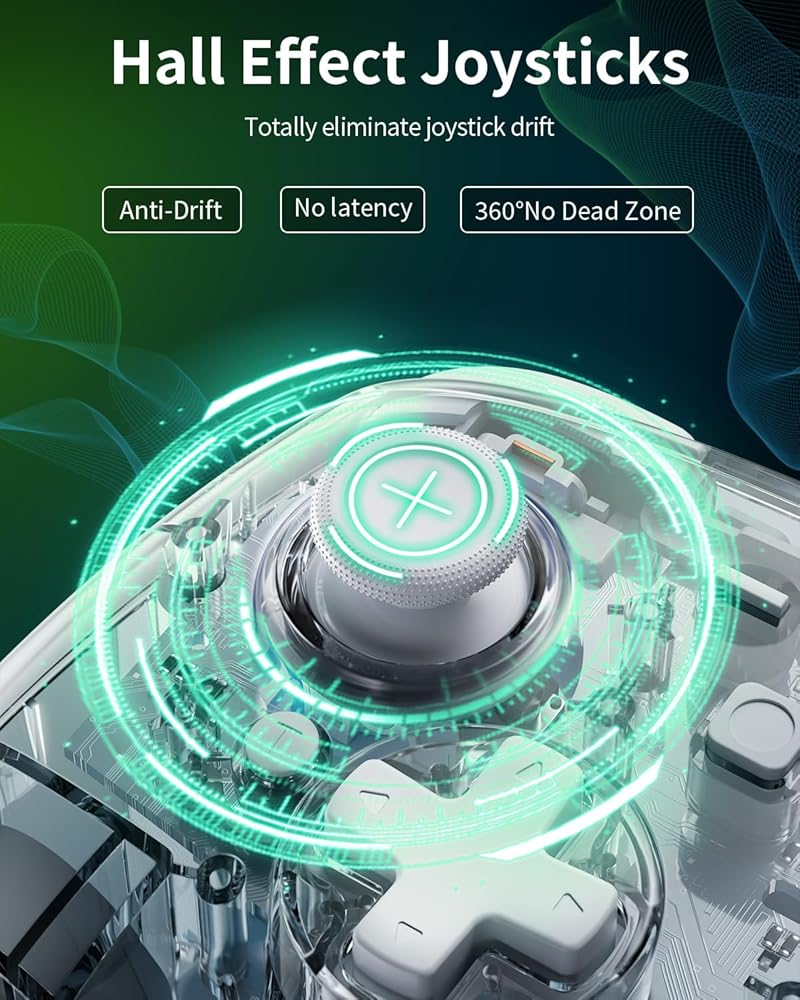Hall Effect Bownstick: يتميز وحدة التحكم في Switch Pro بمستشعرات تأثير القاعة ، مما يضمن التحكم الدقيق من خلال الحث الكهرومغناطيسي. قل وداعًا للانجراف ، وتوفير استجابات سريعة ودقيقة وعمر أطول.