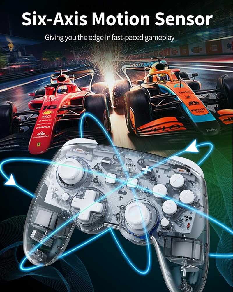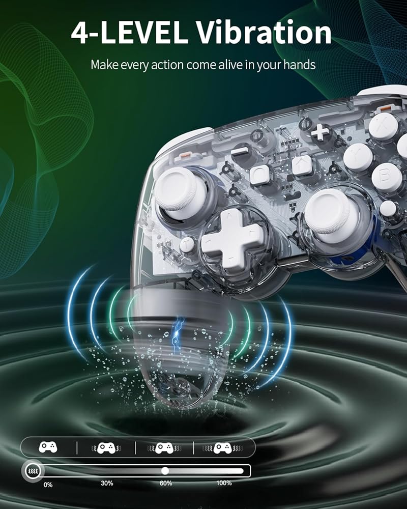 الاهتزاز القابل للتعديل و gyro 6 محاور: توفر ميزة الاهتزاز القابلة للتعديل والمحركات المزدوجة لوحدة التحكم في التبديل ردود فعل غامرة ، في حين أن مستشعر الجيروسكوب المكون من 6 محاور يعزز التحكم في الحركة لتجربة ألعاب أكثر واقعية.