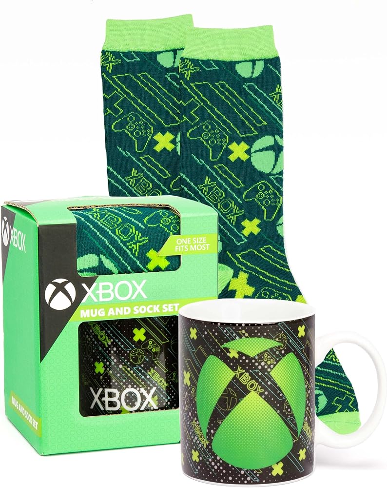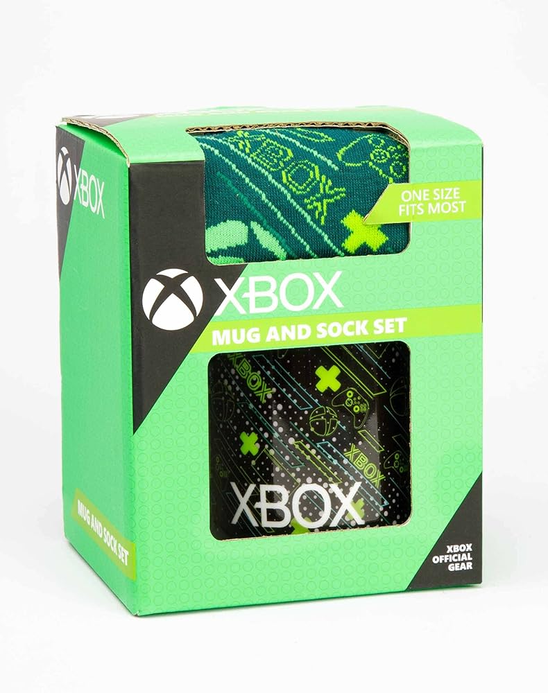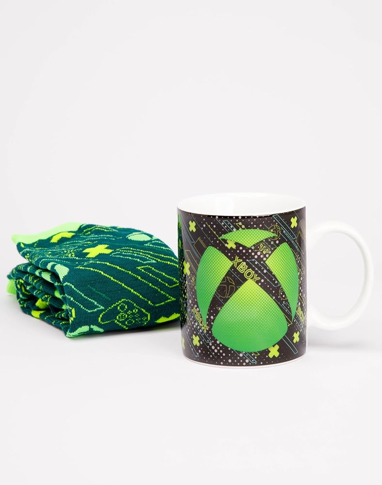 مجموعة هدايا Xbox Mug & Socks له وله - مثالية للاعبين Xbox ، يتميز هذا القدح الأسود والأخضر والجوارب الطويلة الجديدة بشعار Xbox والرموز كما هو موضح على الجهاز والألعاب ووحدة التحكم!