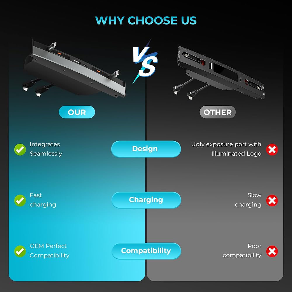CAR USB Hub لـ Tesla - شاحن سريع لـ Model Y Model 3 الملحقات 2024 2023 2022 - محطة الإرساء المتعددة للمنافذ القابلة للسحب بنسبة 100 ٪ طراز Censole Model Y (2021-2024) Model 3 (2021-2023)