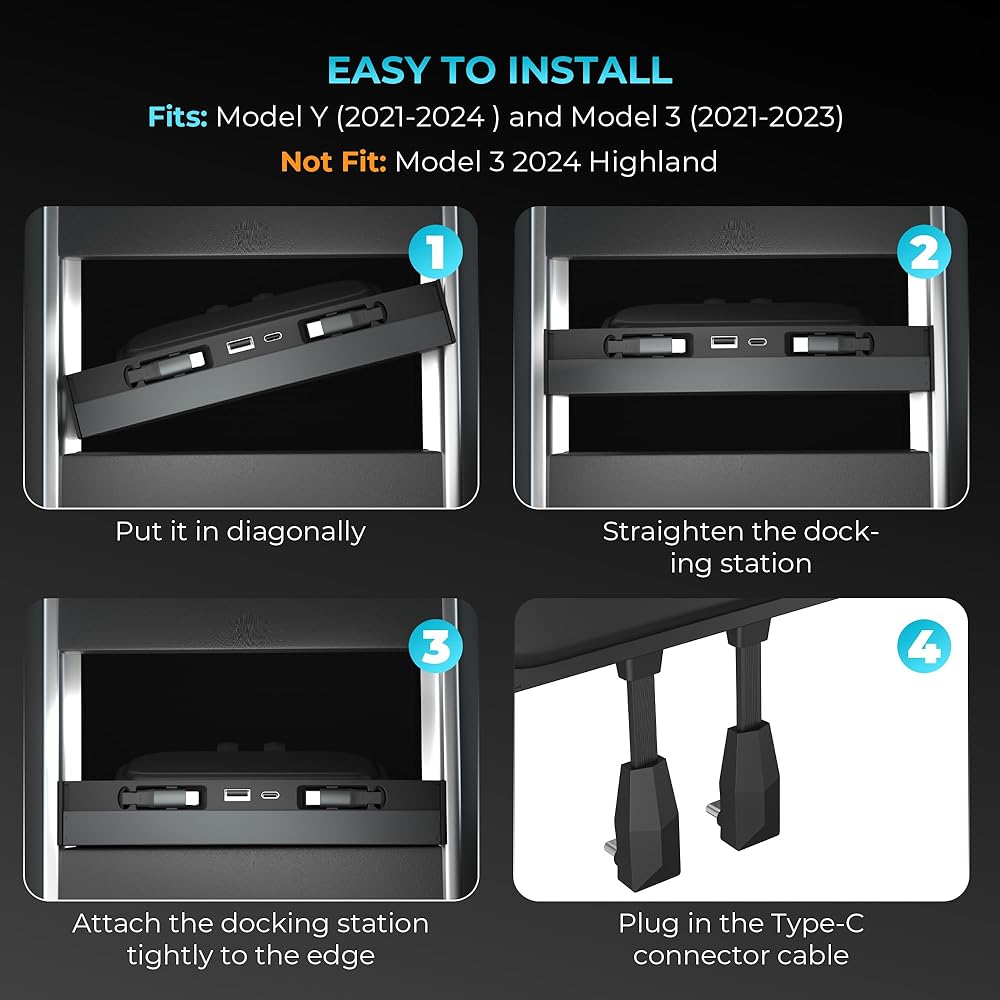 【5 ثوان من التثبيت البسيط】 يسهل تثبيت Tesla USB Hub ، ولا حاجة إلى تفكيك أو إلحاق الضرر بوحدة التحكم المركزية ، فقط يمكن إكمال عملية بسيطة ، ويمكن تثبيتها بشكل مثالي على وحدة التحكم USB في مركز Tesla y أو 3 النماذج.