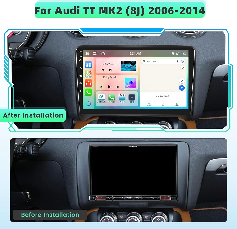 【8 Core 6G+128G】 مجهز مع وحدة المعالجة المركزية 8-Core و 6G RAM و 128G ROM. متوافق مع Audi TT MK2 (8J) 2006-2014. يأتي الاستريو مع وحدة رأس داخلية ، وكابلات تسخير الأسلاك ولوحة الإطار. يرجى التحقق مما إذا كان منفذ كابل الطاقة في صفحة التفاصيل يتطابق مع سيارتك الأصلية قبل الشراء.